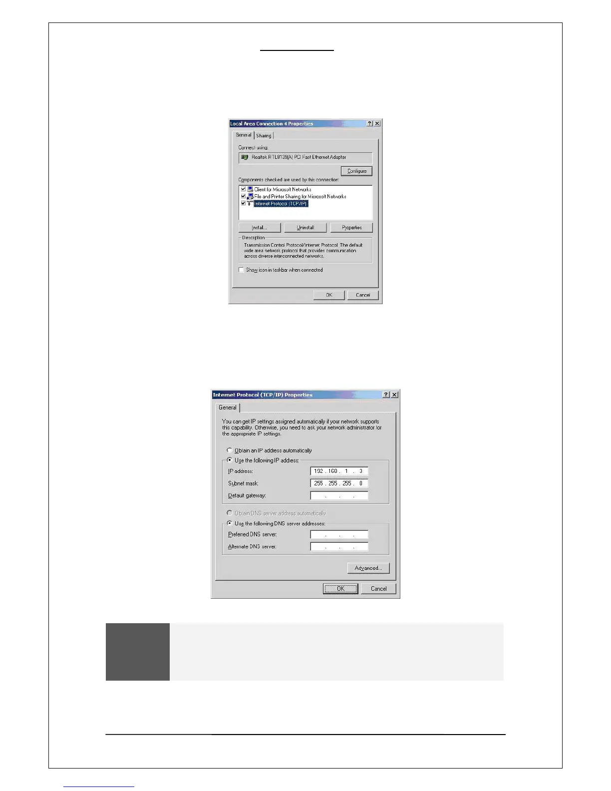 If you want a manual IP setup, please obtain an available IP address and subnet