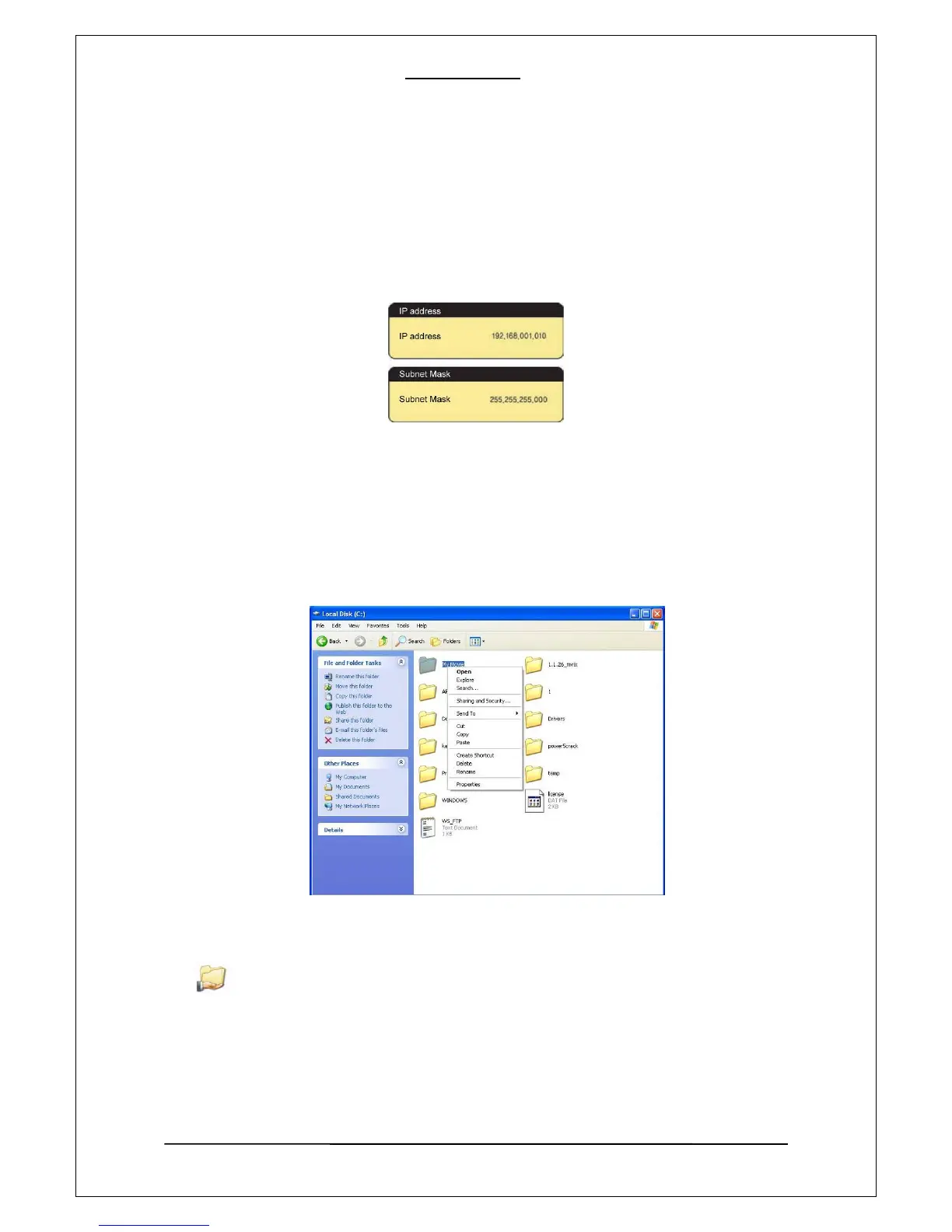 For example) IP Address : 192.168.1.10 / Subnet Mask: 255.255.255.0