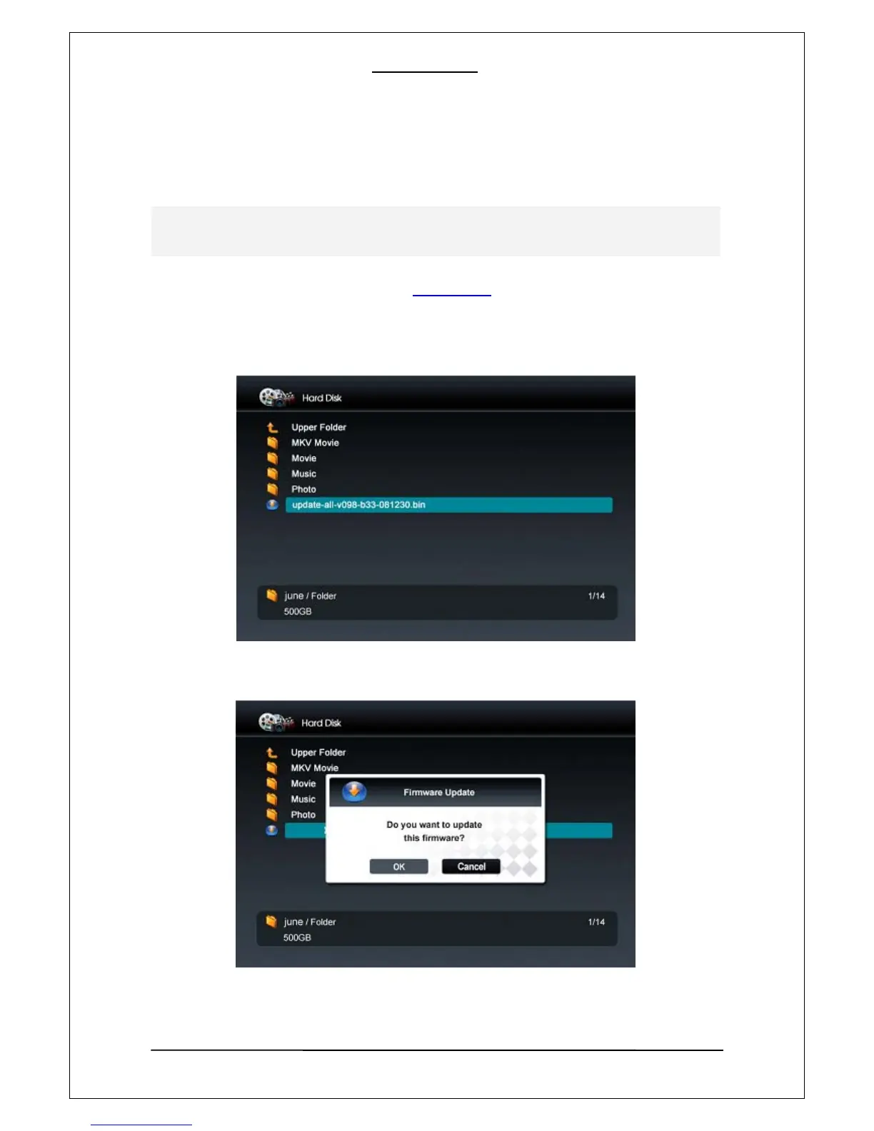 remote control and press “OK” button to start the upgrade.