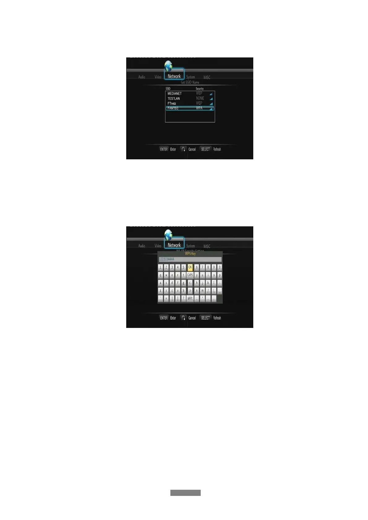 Encryption keys can be inputted via the virtual keyboard. Press the navigational buttons to
