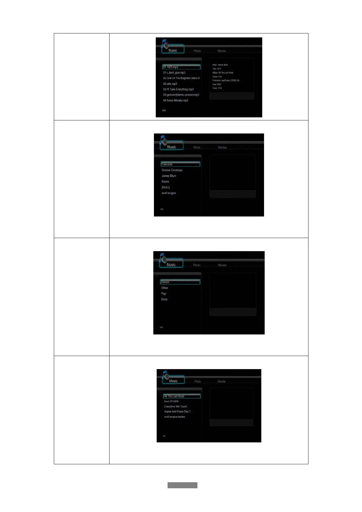 Select to list all the music files by genre.