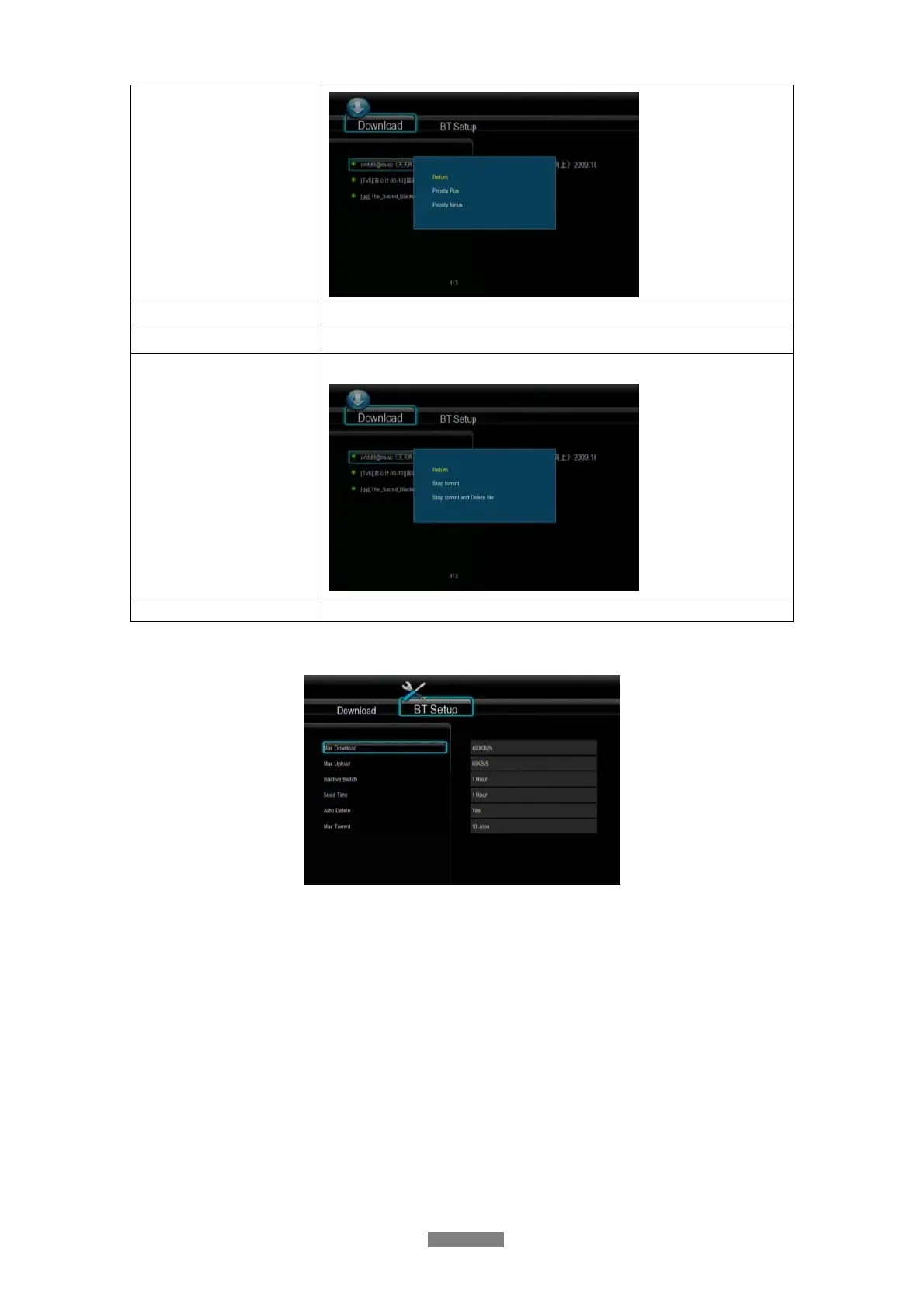 In the BT Setup menu, you can configure the following settings. Use UP/DOWN and ENTER