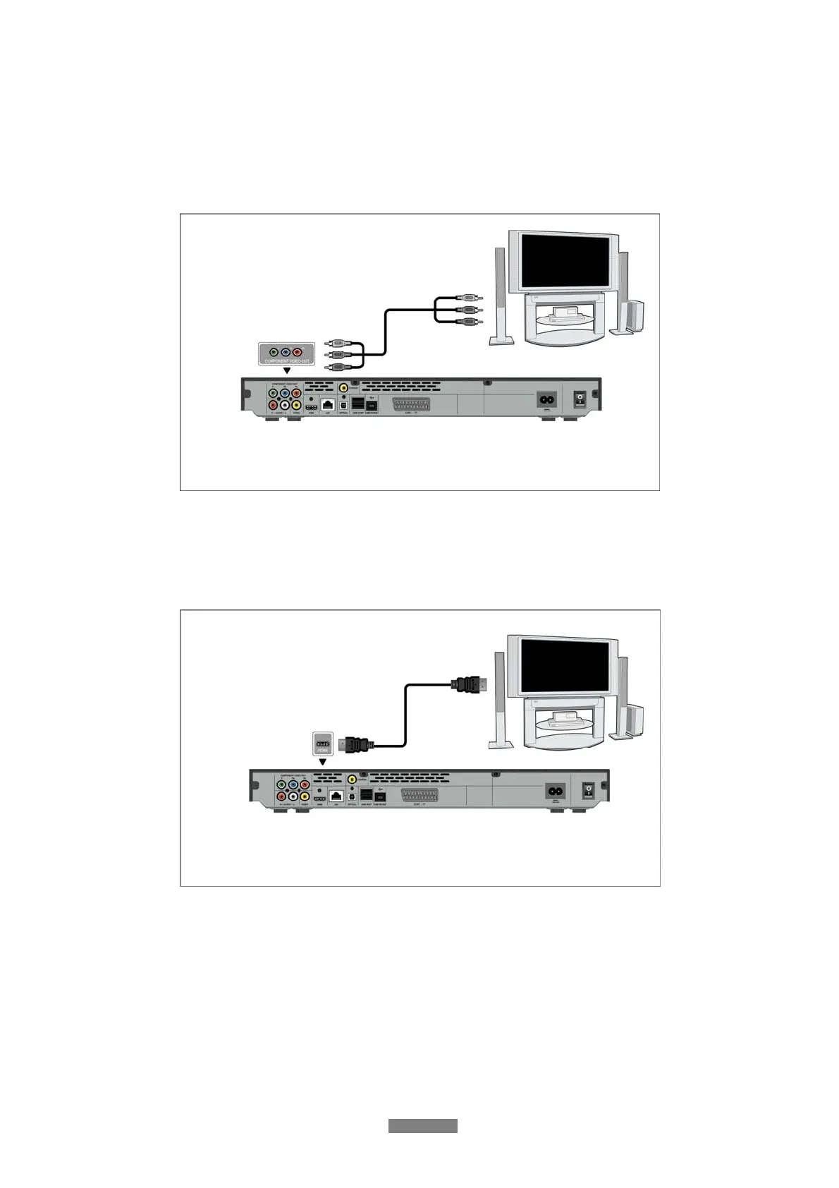 (1) Follow the picture and plug one connector on your HDMI cable to the player’s HDMI jack;