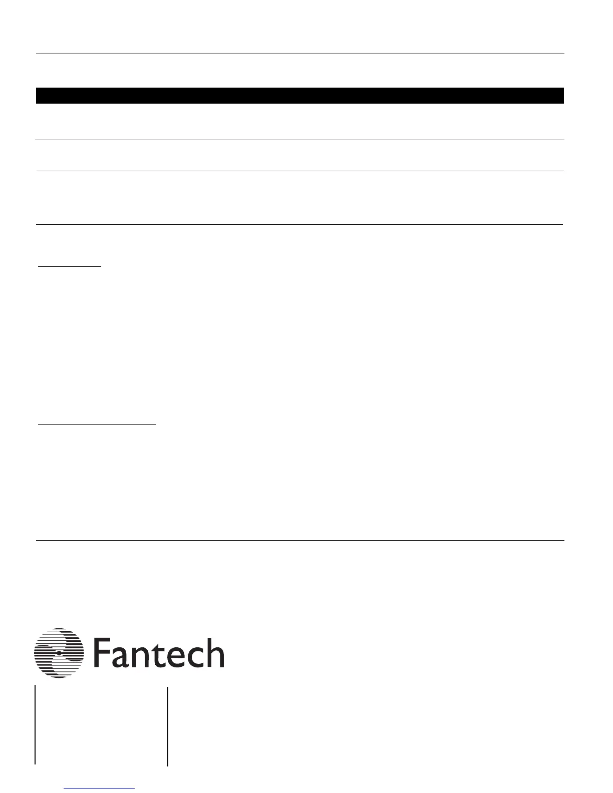 Warranty claims should be sent to Fantech, Inc., Attn: Quality Department, 10048 Industrial Blvd., Lenexa, KS 66215. Included in the claim should be Order Number,