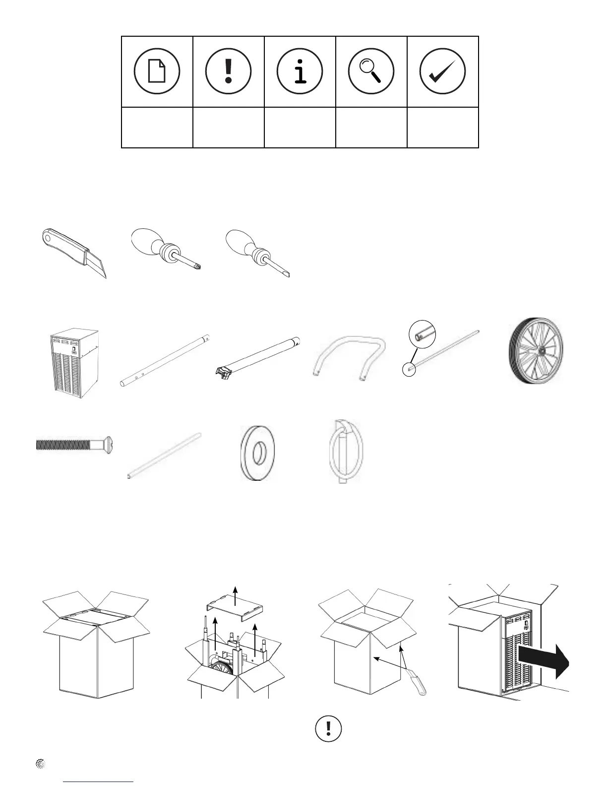 Unidad básica (1) Tubo largo (2) Tubo corto (2) Asa curvada (2) Eje de rueda (1) Rueda cantidad (2)