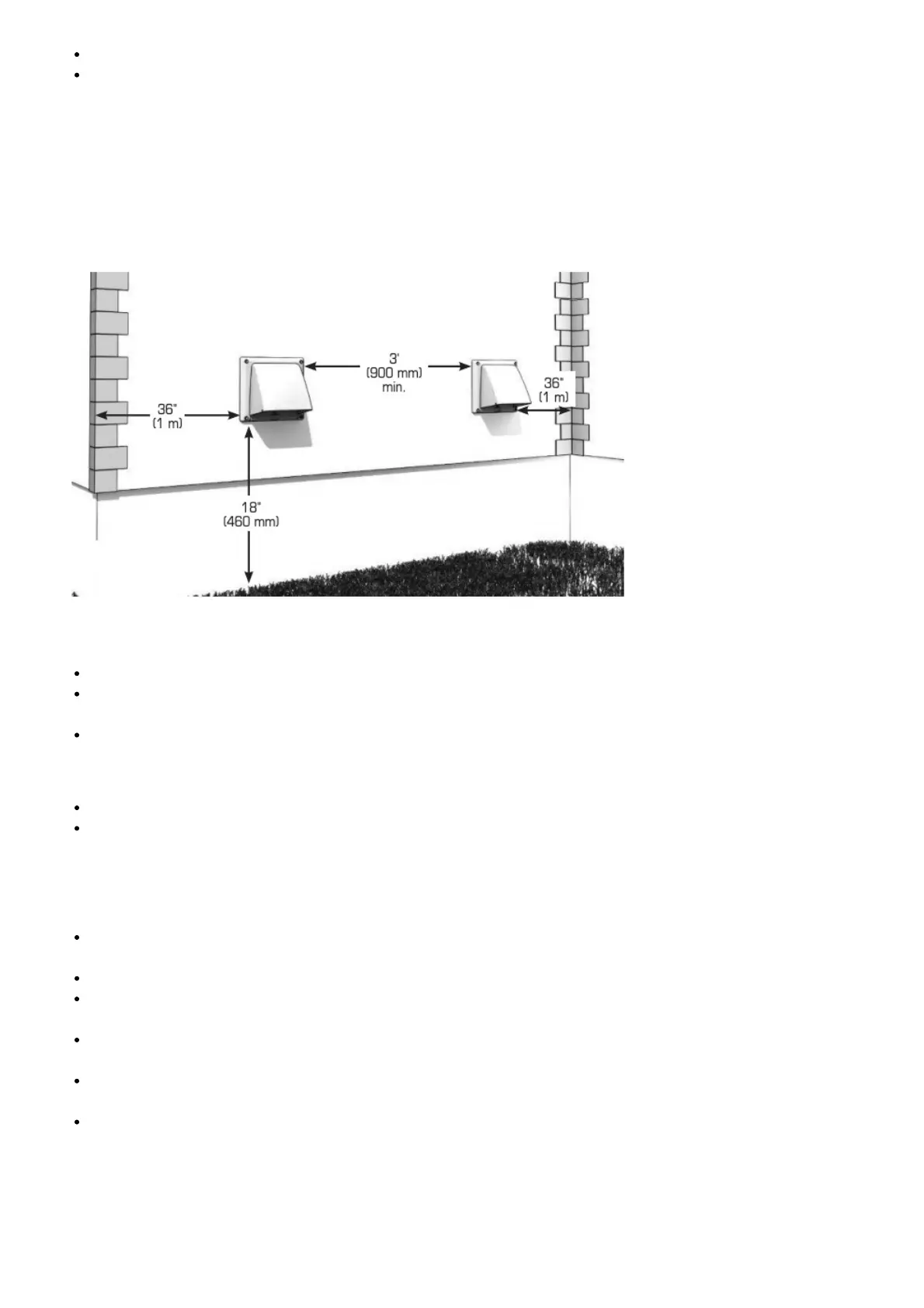 At a minimum of 900 mm (3′) away from dryer vents and furnace exhaust (medium or high efficiency furnaces),