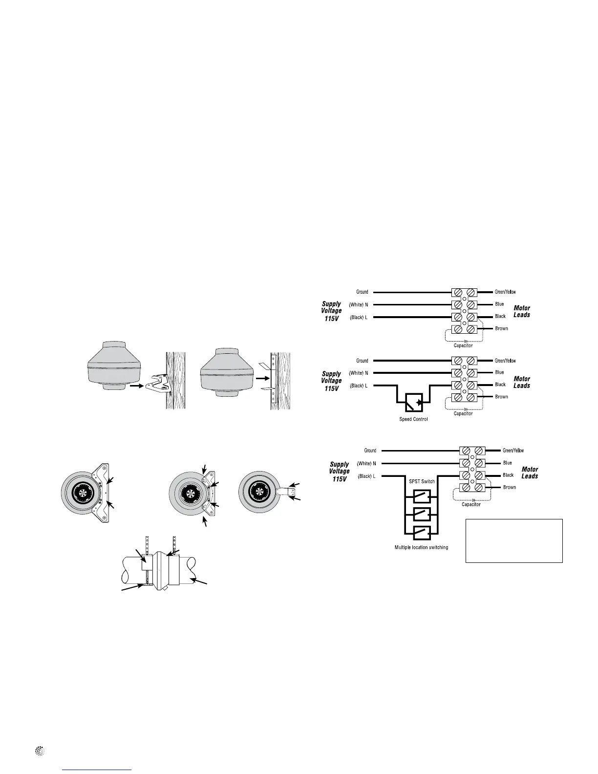 provided. Fan can be mounted at any point along the duct and at any angle.