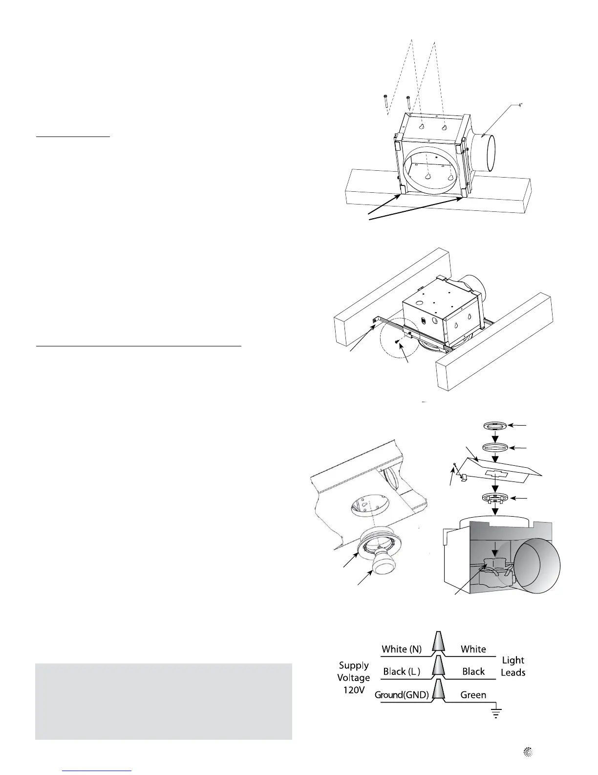 knockout if needed. To complete installation for Bath Fan models with lights,