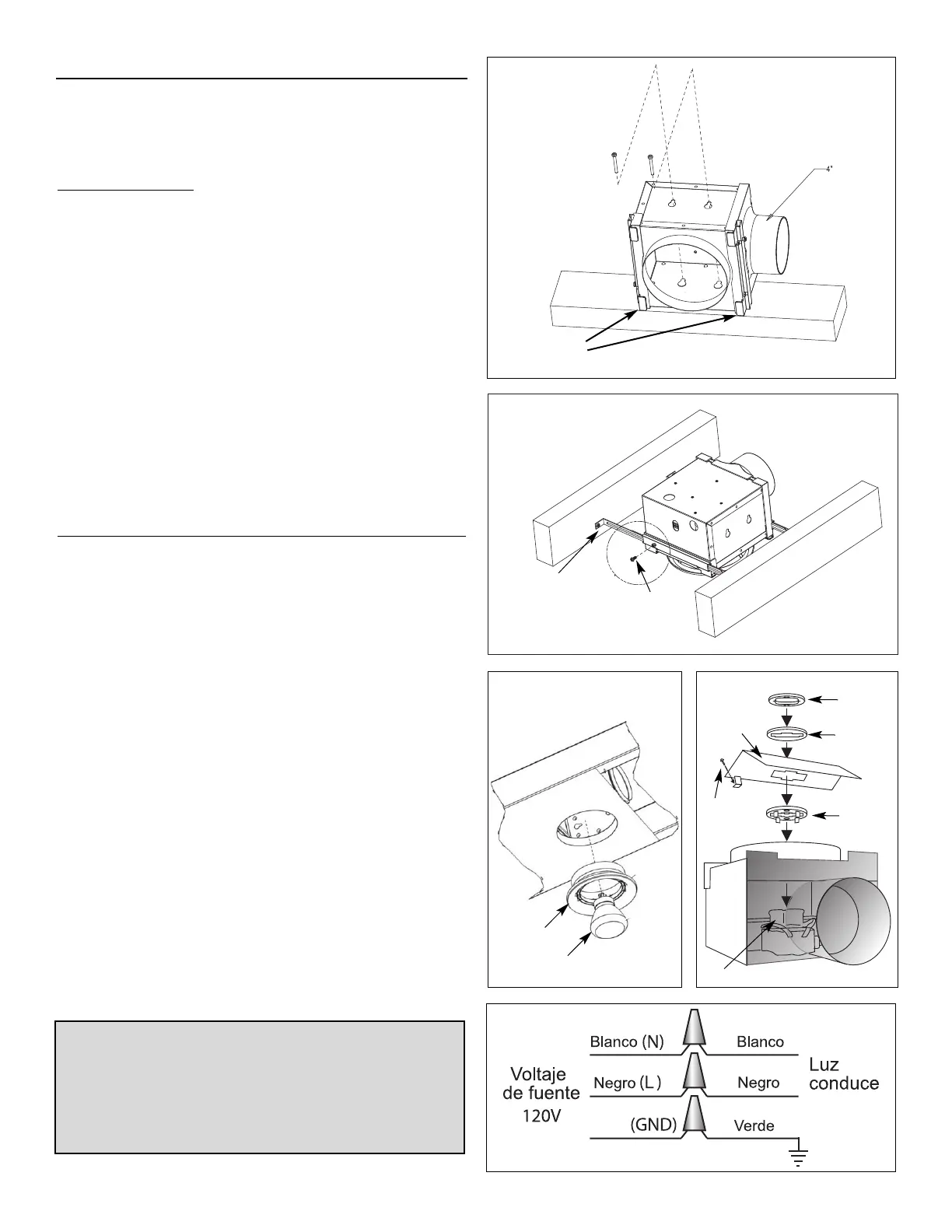 conducto de 4" o 6" desde el ventilador hasta la caja de la rejilla. El uso