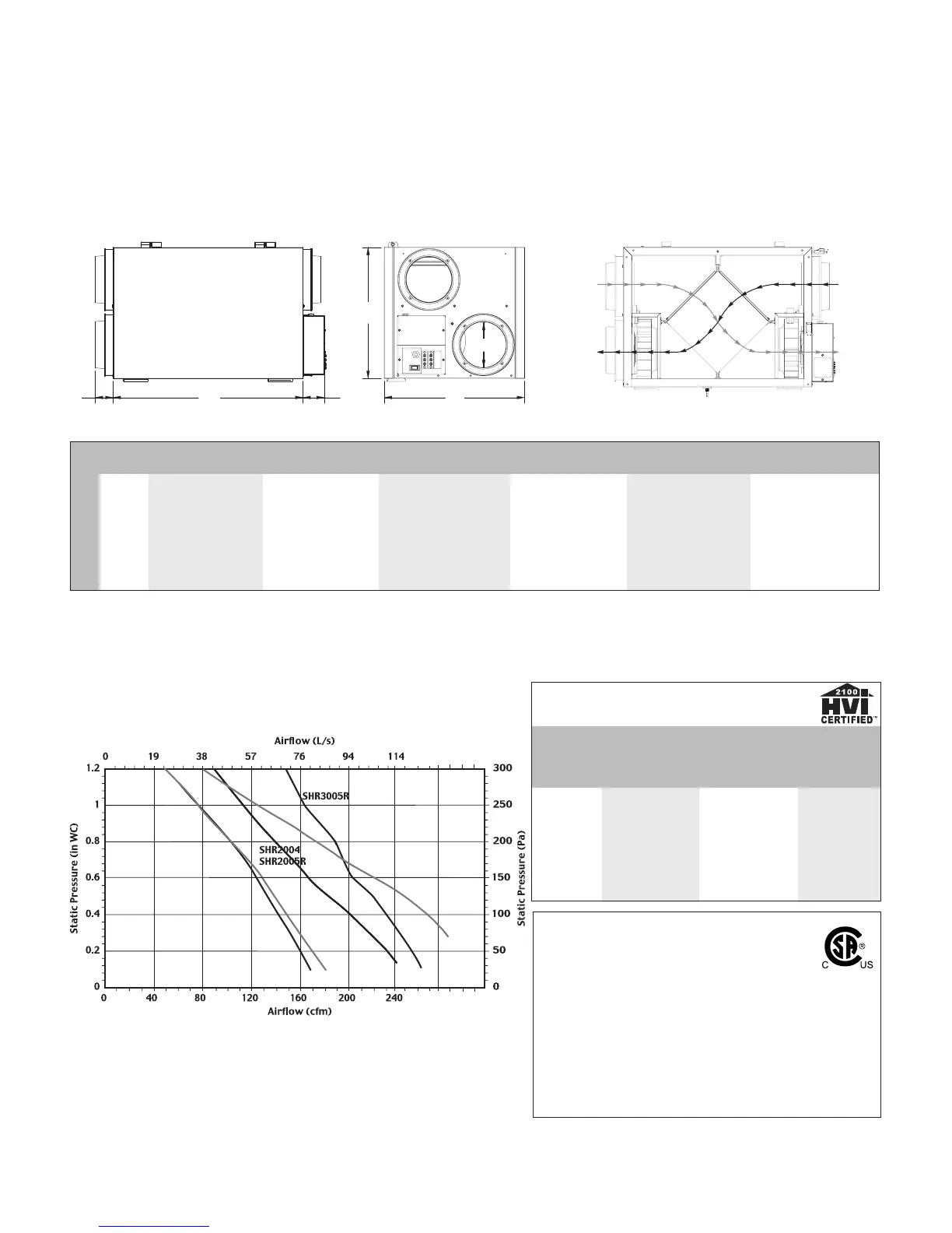 SHR 3005R 92% @55 L/s (117 CFM) 91% @57 L/s (121 CFM)