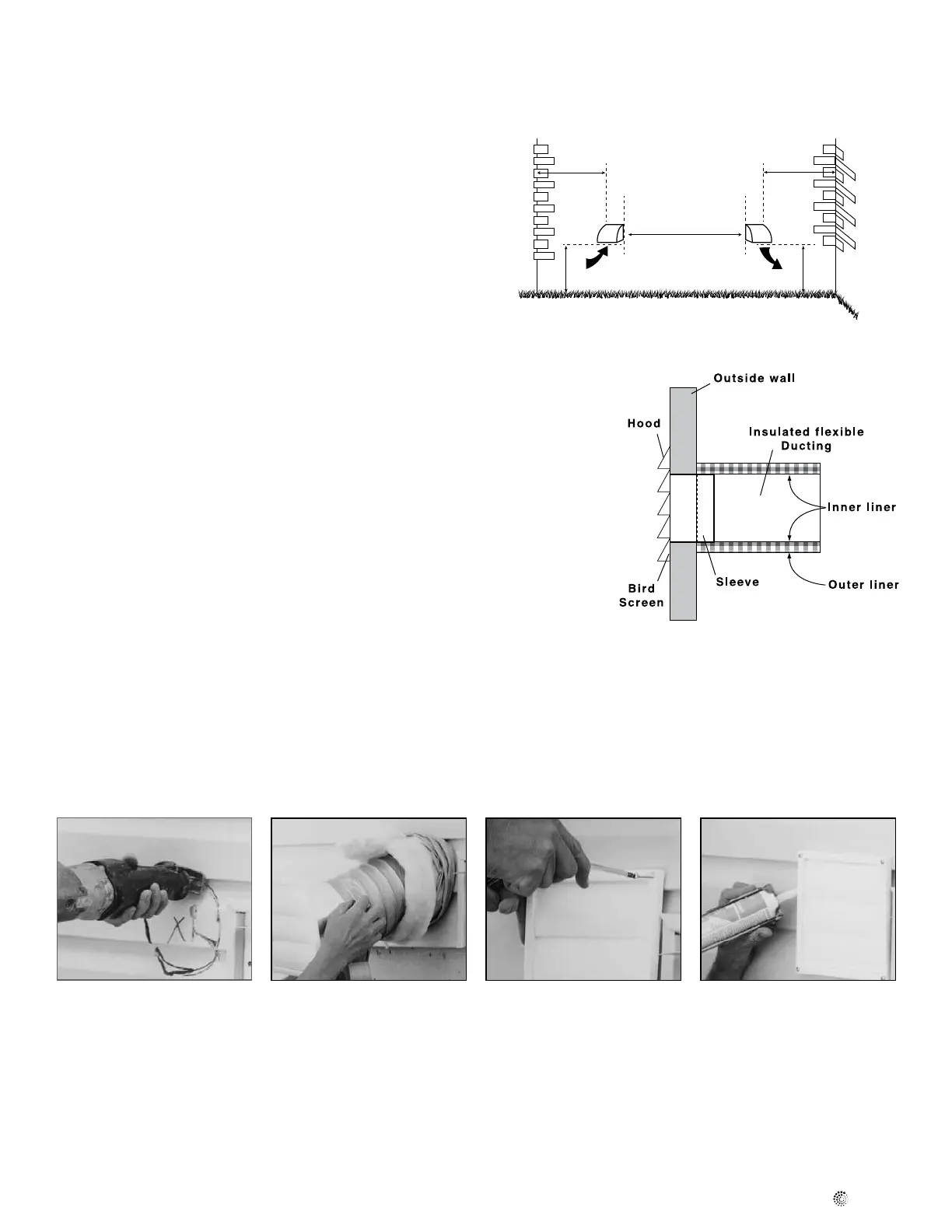 weatherhood (as close to the outside as possible) and to the appropriate duct connection on the