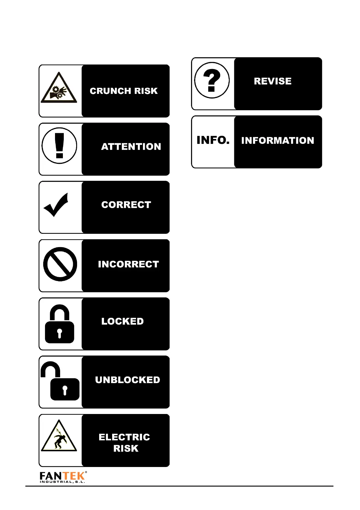 Fantek FT-6860 - WARNING ICONS AND SAFETY RULES; Crunch Risk Symbol; Attention Symbol; Correct Procedure Symbol