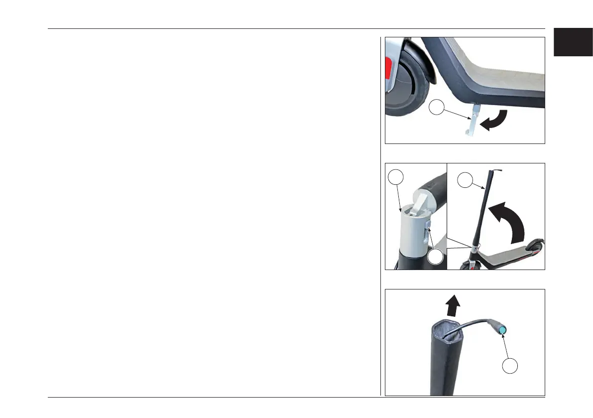 – Open side kickstand “A” of the e-scooter and
