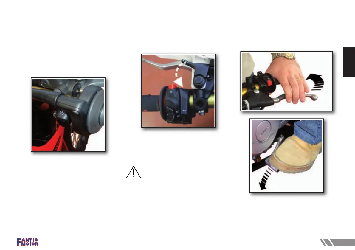 Pull the clutch lever while pushing the start but-
