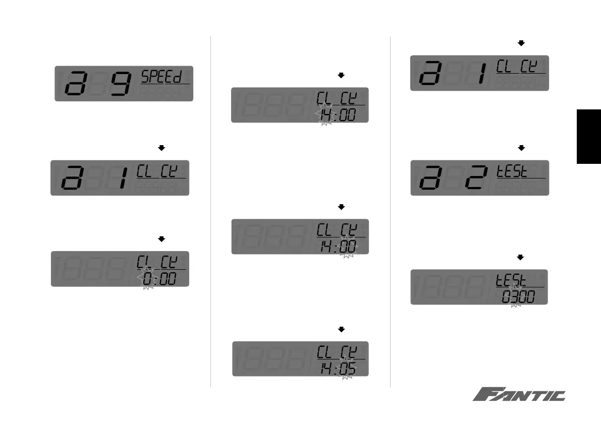 • Um vom Geschwindigkeitsmenü zum Menü der