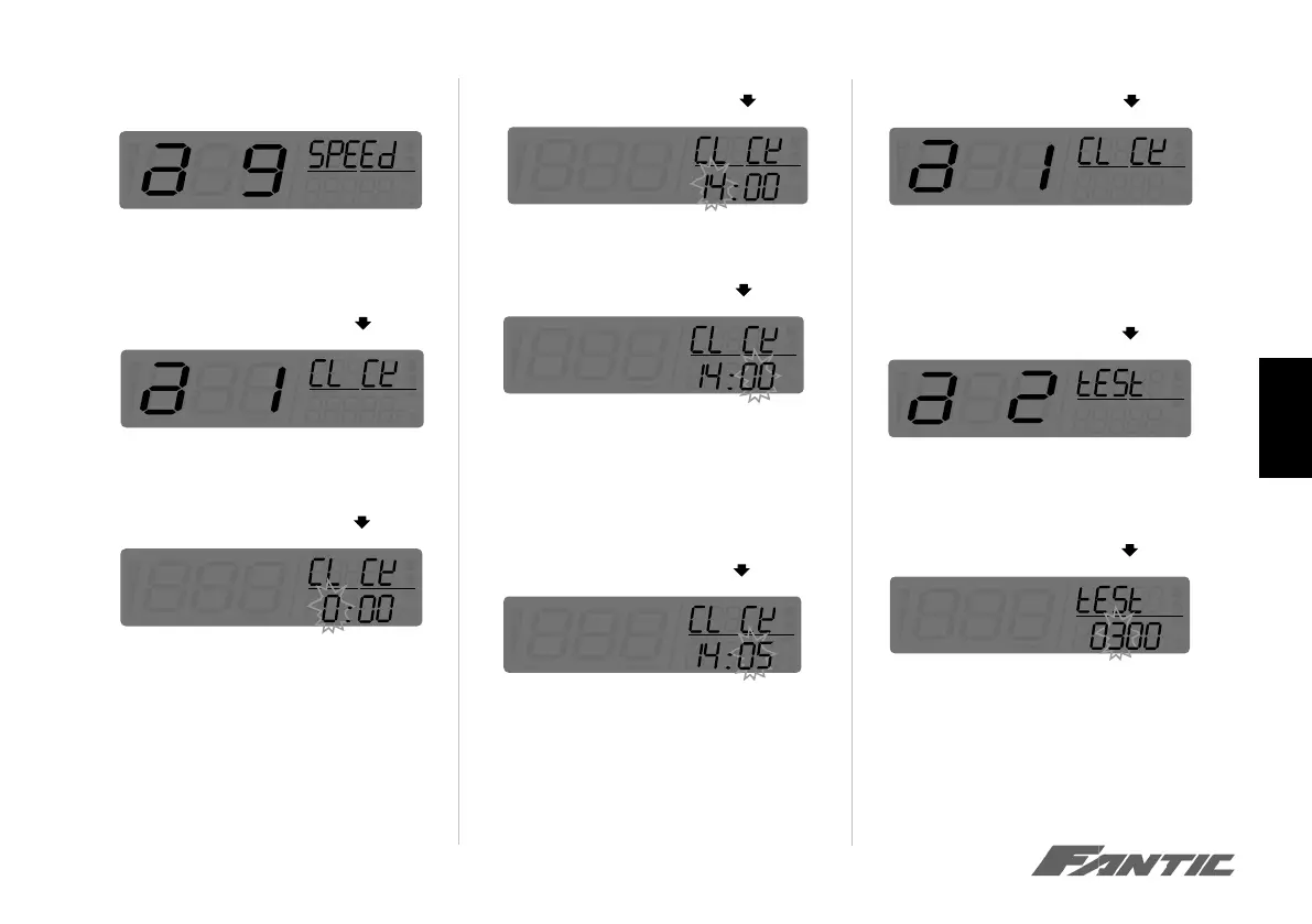 menu Clock à menu Test (confi guration de la dis-