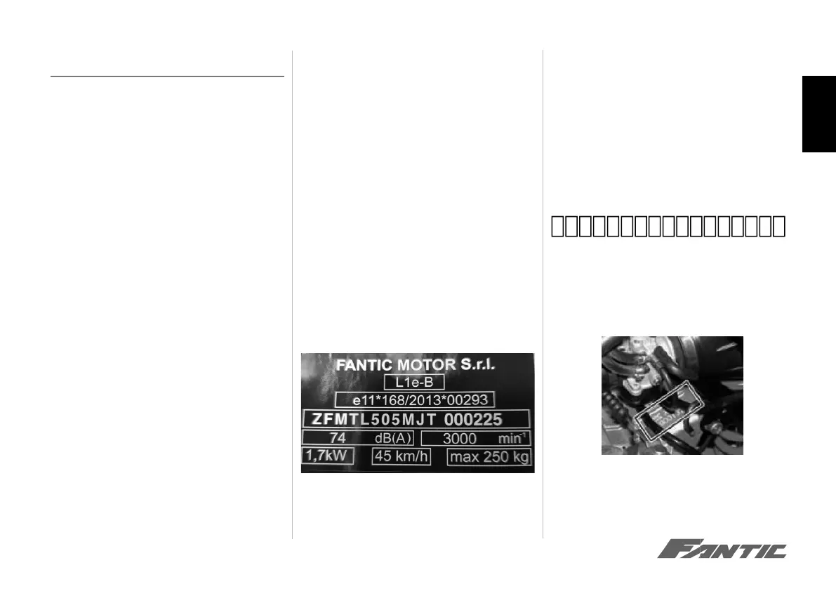 Every FANTIC MOTOR vehicle also has an engine iden-