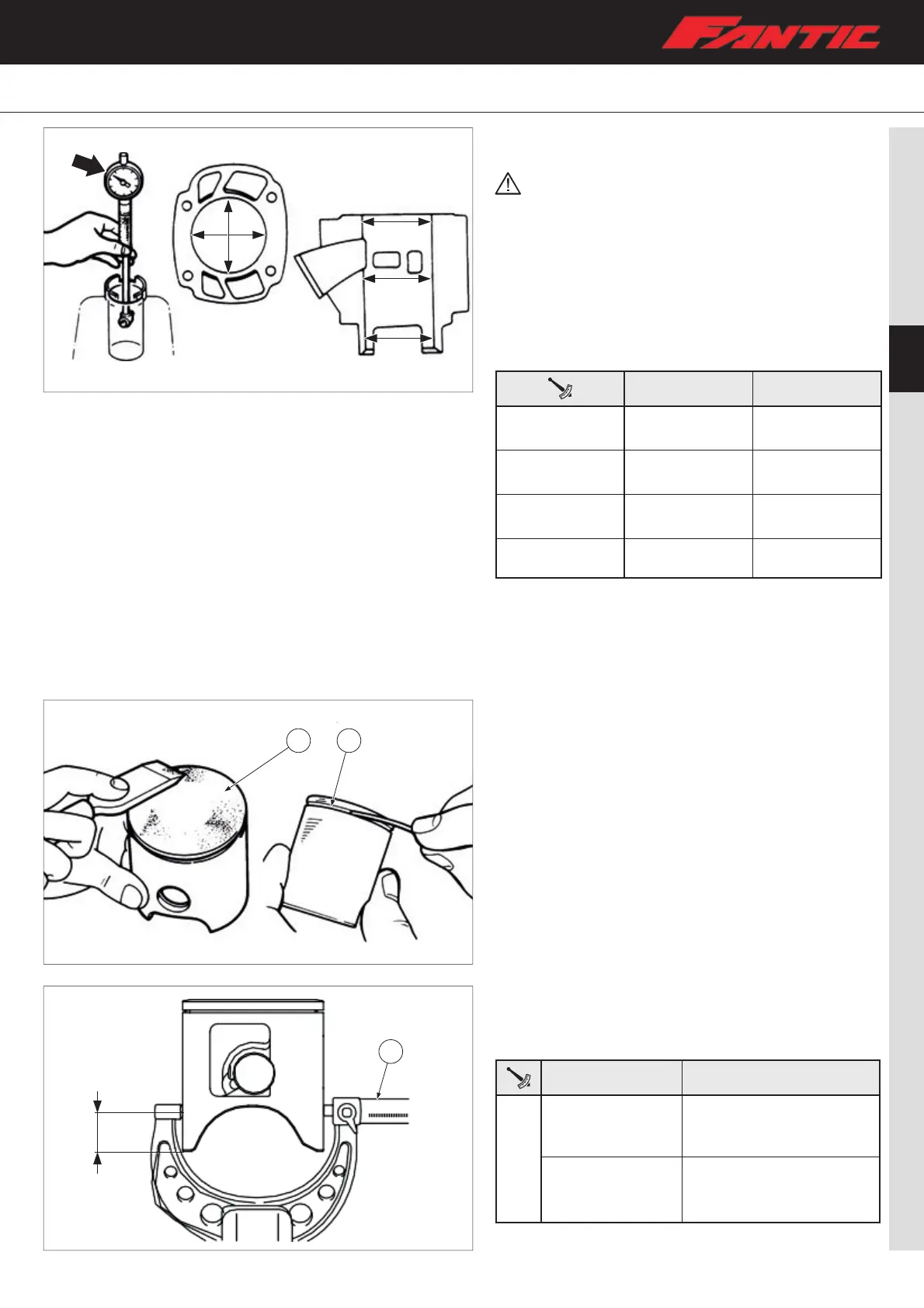 – Measure the diameter of the piston skirt using a micrometer