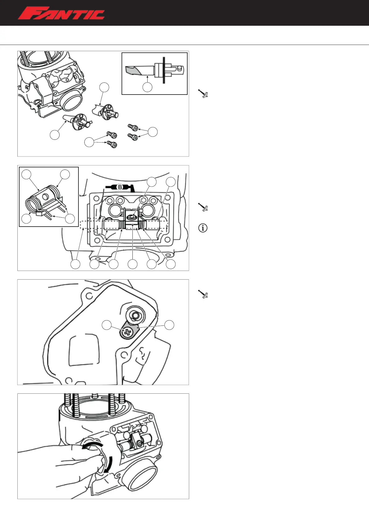 – Install the exhaust valves “1” and “2” with section “a”