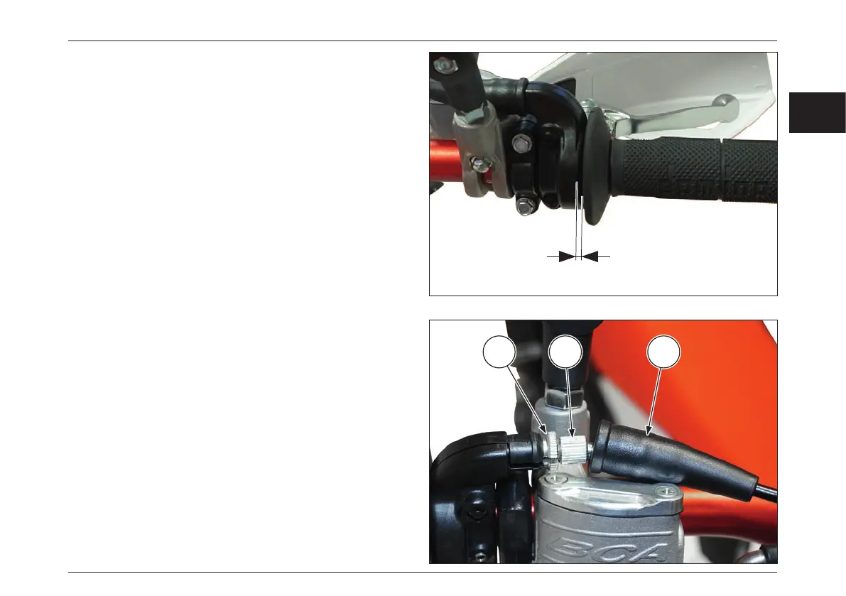 The no-load travel (A) of the accelerator handle must be 2–3