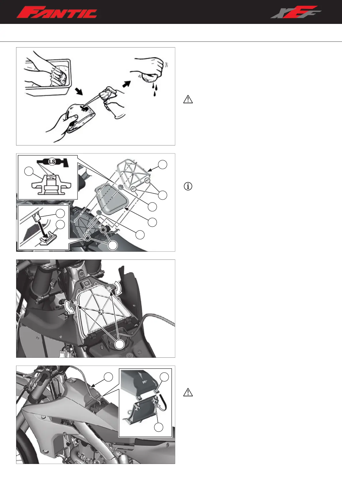 – Apply air filter oil to the filtering element, squeeze it to