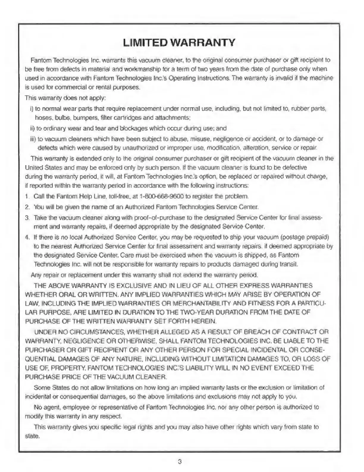 USE OF, PROPERTY. FANTOM TECHNOLOGIES INC. S LIABILITY WILL IN NO EVENT EXCEED THE
