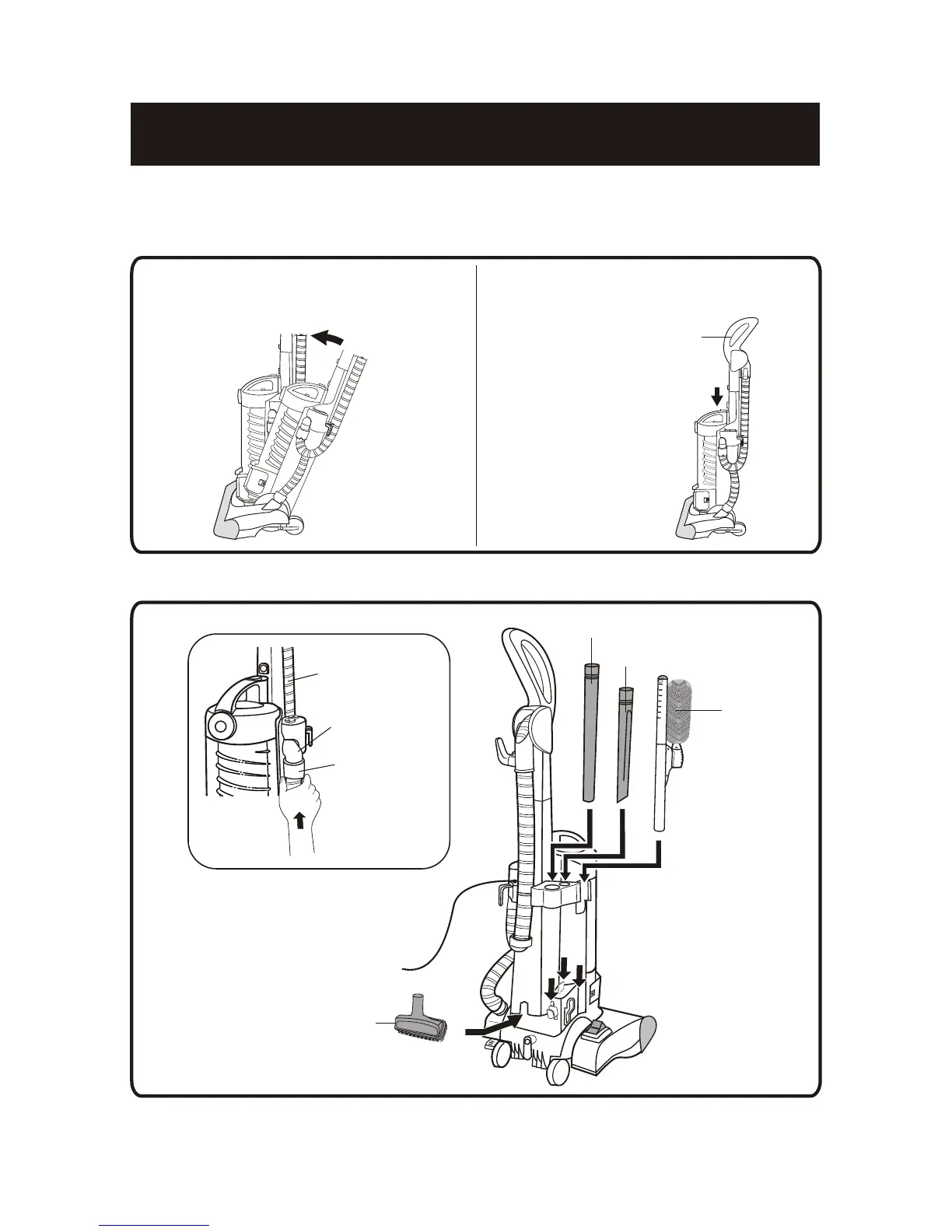 Attaching the suction hose A & attachments