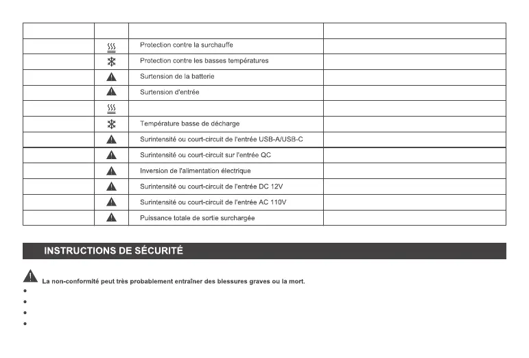 N'utilisez la prise de sortie que pour alimenter des appareils externes. Ne connectez jamais la sortie à l'alimentation secteur, quelles que soient les