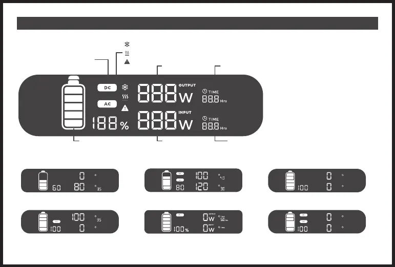 1、充電入力表示 2.充電用入力(DC+ACデル出力)表示 3.ディプレイスイッチ