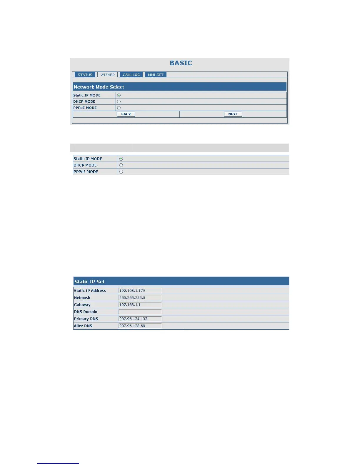 Choose Static IP MODE,click【NEXT】can config the network and SIP(default