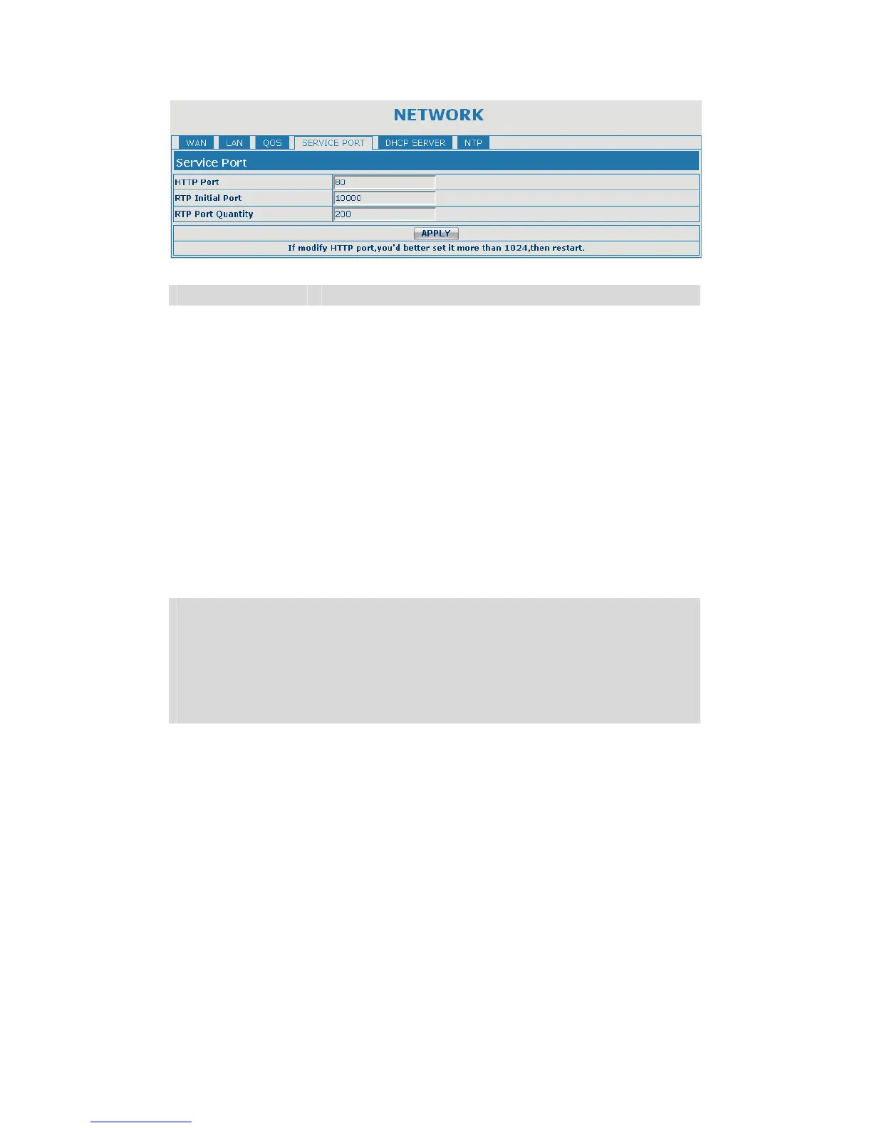 RTP Port Quantity Set the maximum quantity of RTP Port, the default is