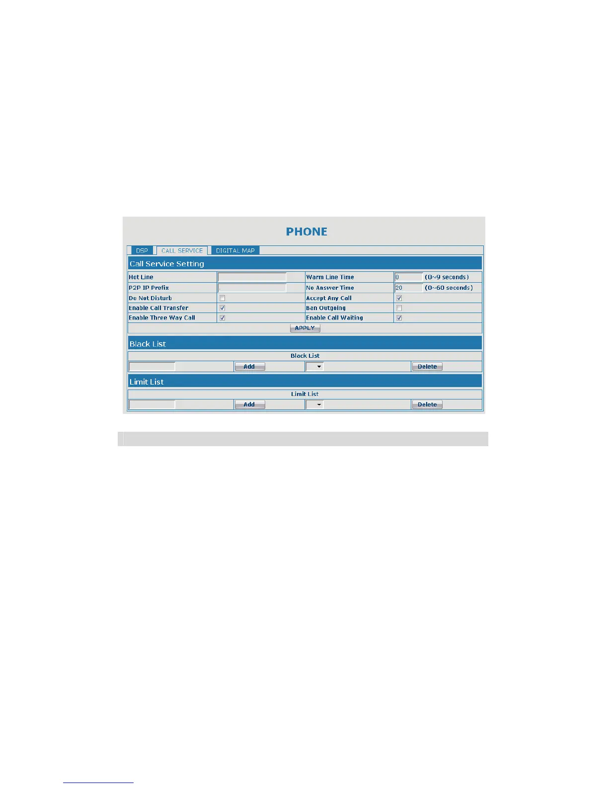In this web page, you can configure Hotline, Call Transfer, Call Waiting, 3 Ways Call,