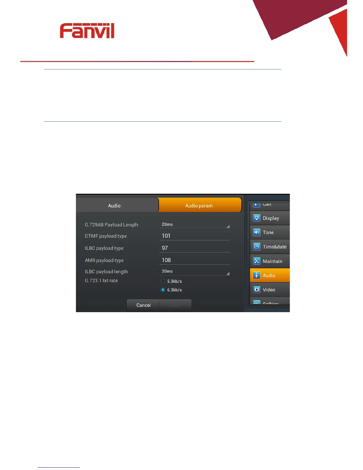 Touch"Audio">"Audioparam"interface.Afterconfiguringtheparameters,youcan