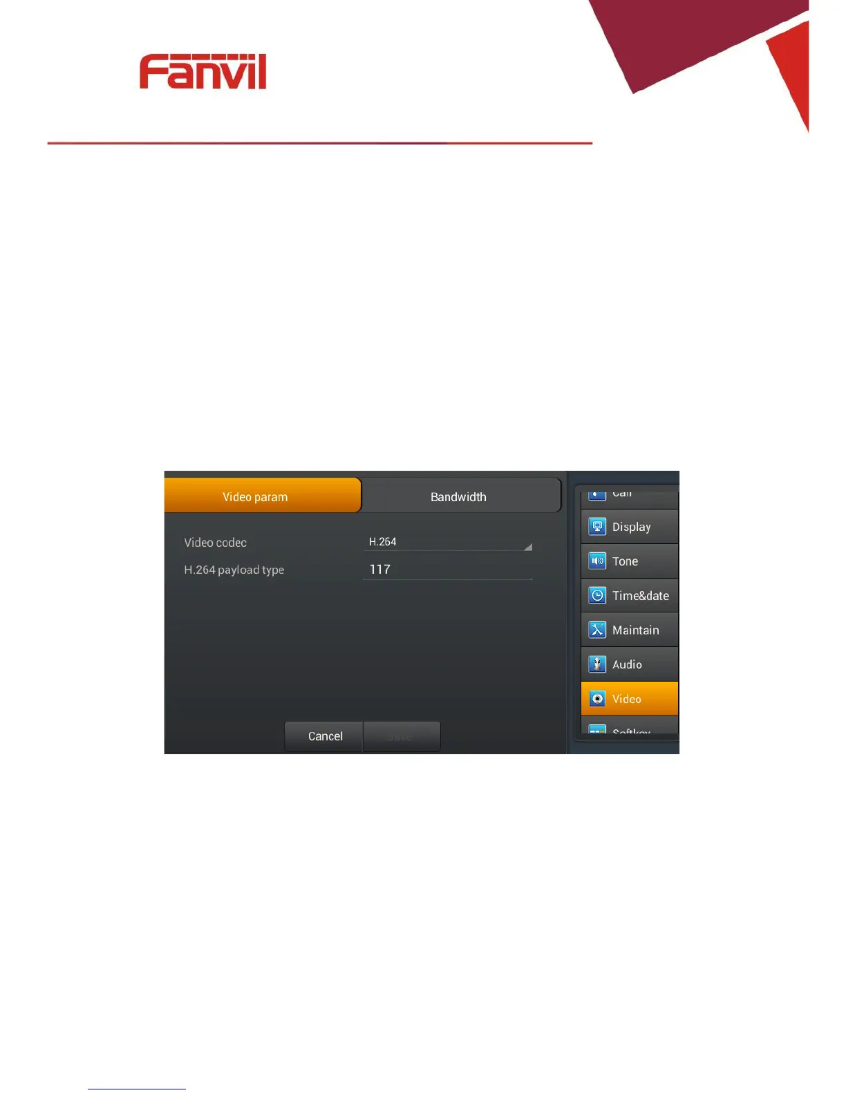 Touch "Video"> "Video param" interface. After configuring the parameters, you can click
