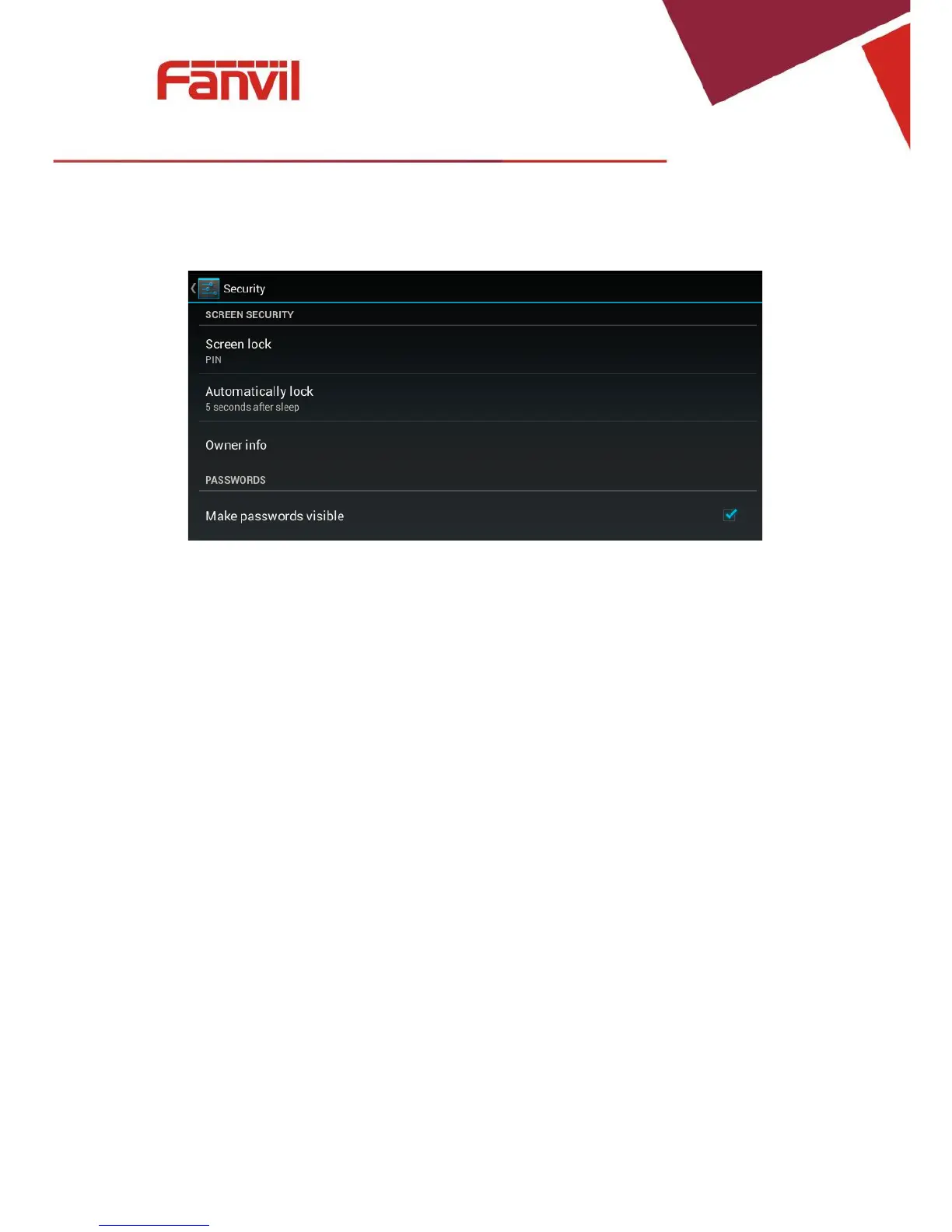 ● ClickSecurity>Screenlockentertheconfigurationinterface;