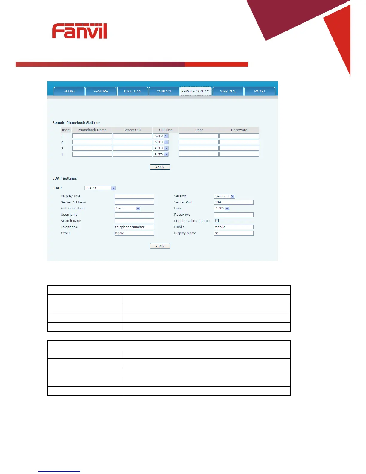 TFTP example for remote xml mode: Set the Phonebook Name as Fanvil - Server URL is