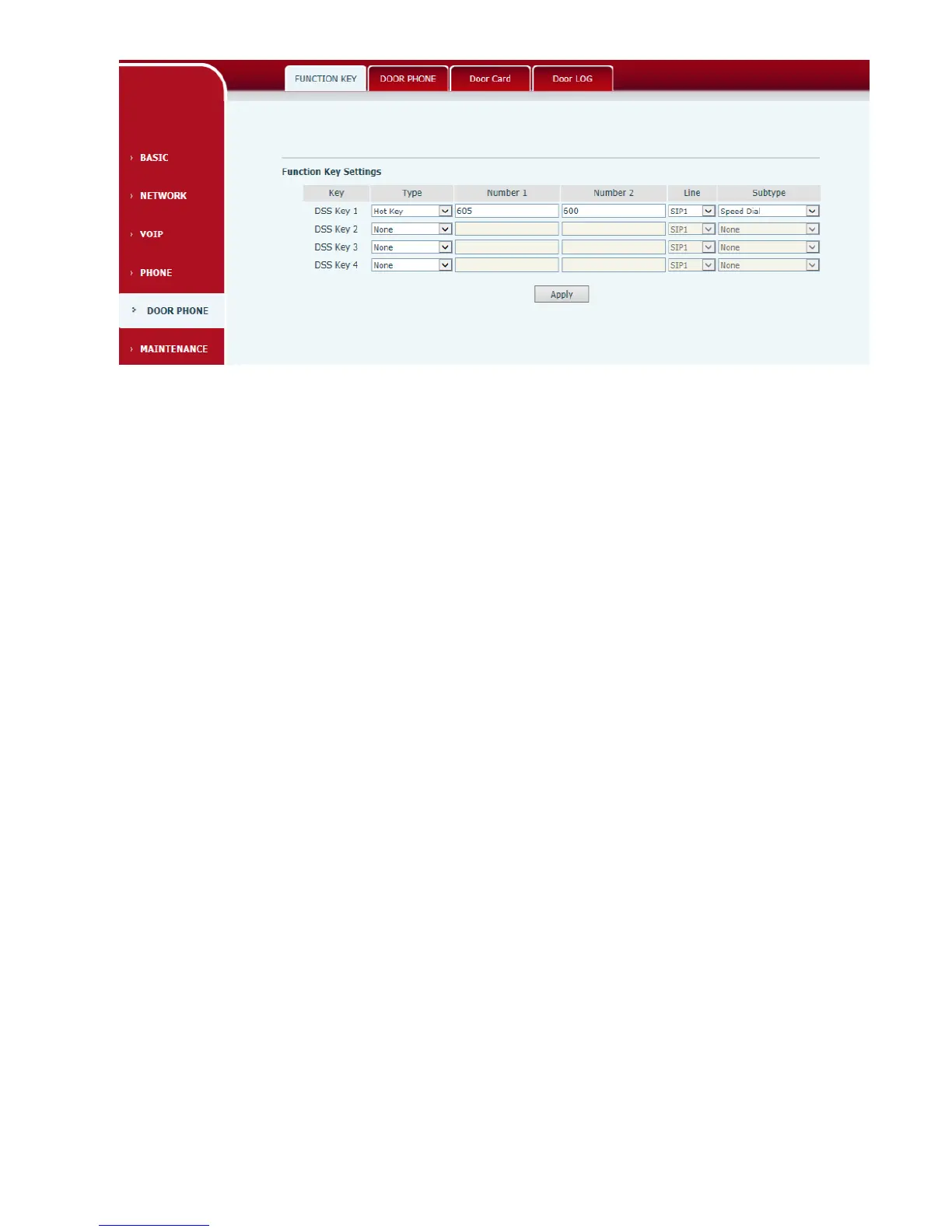 Number 1/2 is the fixed phone number, when press the DSS key, the phone call the fixed phone