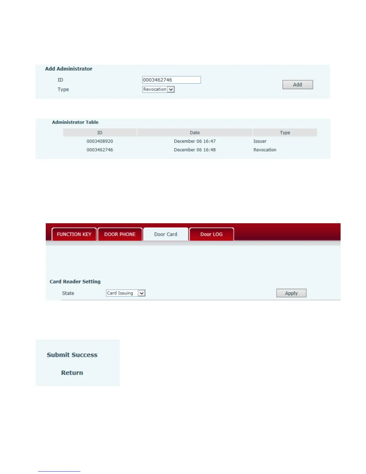 Input available card number to ID input field, choose “Revocation”, then press Add to add Delete