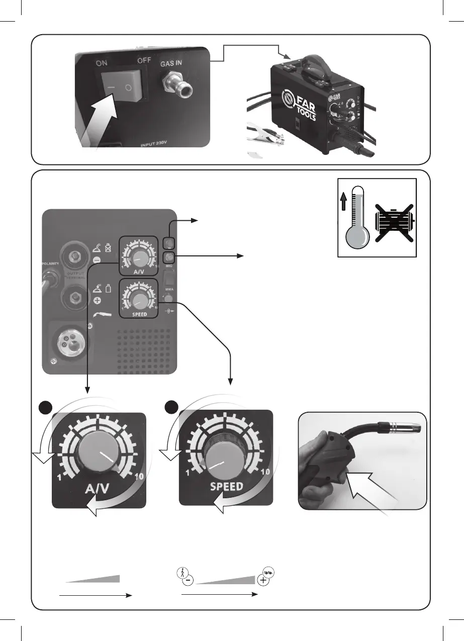 Thermische beveiliging :in geval van oververhitting, de welder stopt