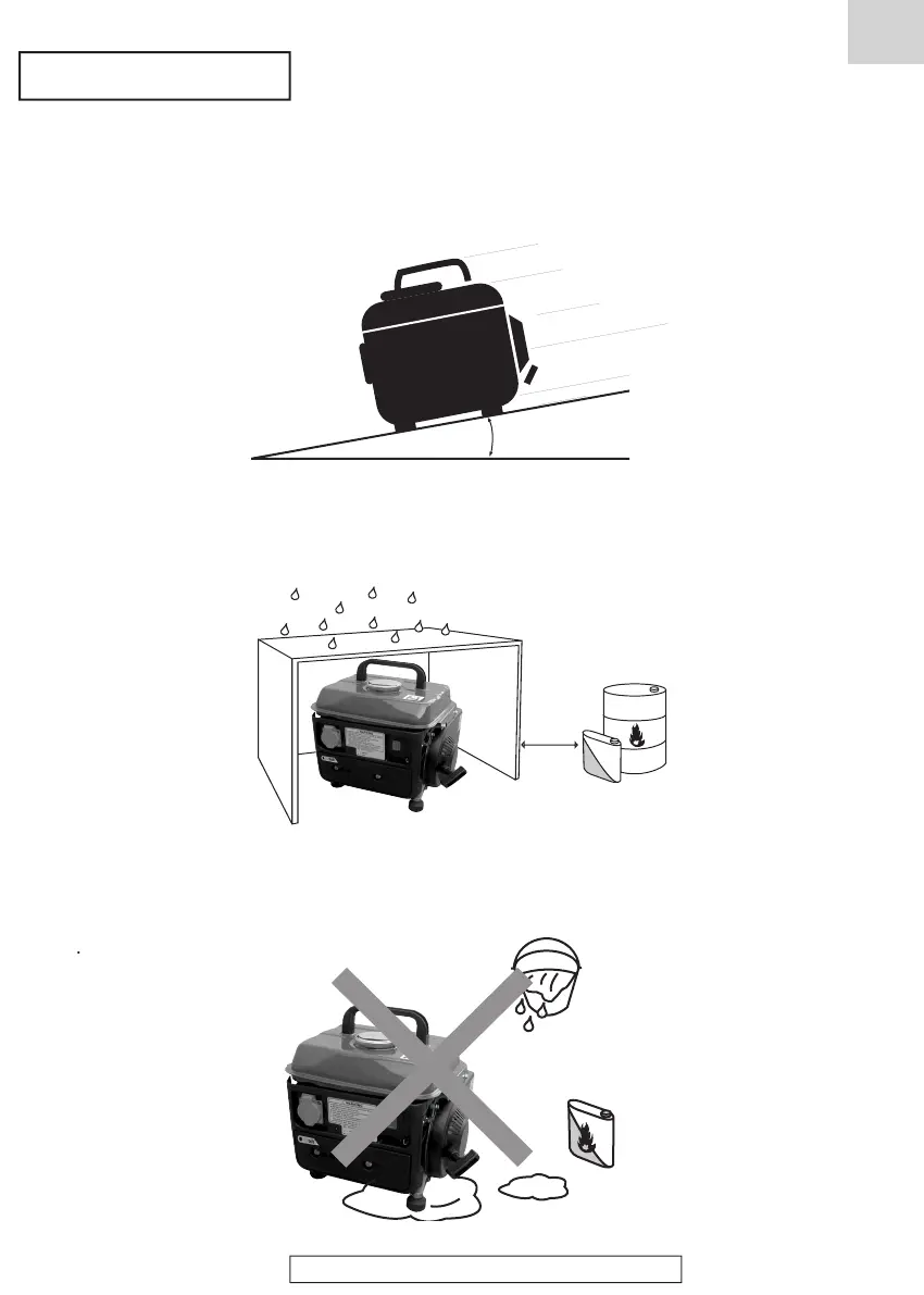 - Coloque o grupo electrogéneo sobre uma superfície plana e horizontal, e suficientemente