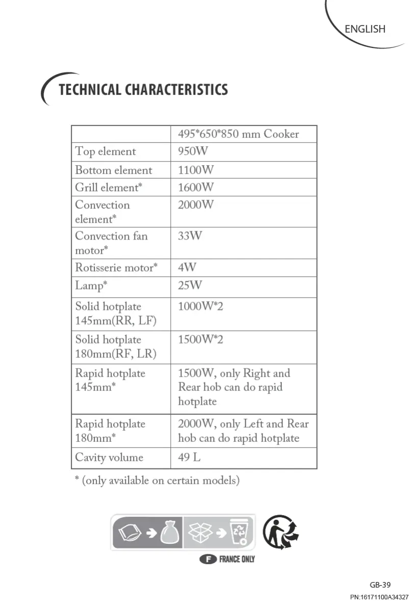 FAR CE506021W - TECHNICAL CHARACTERISTICS