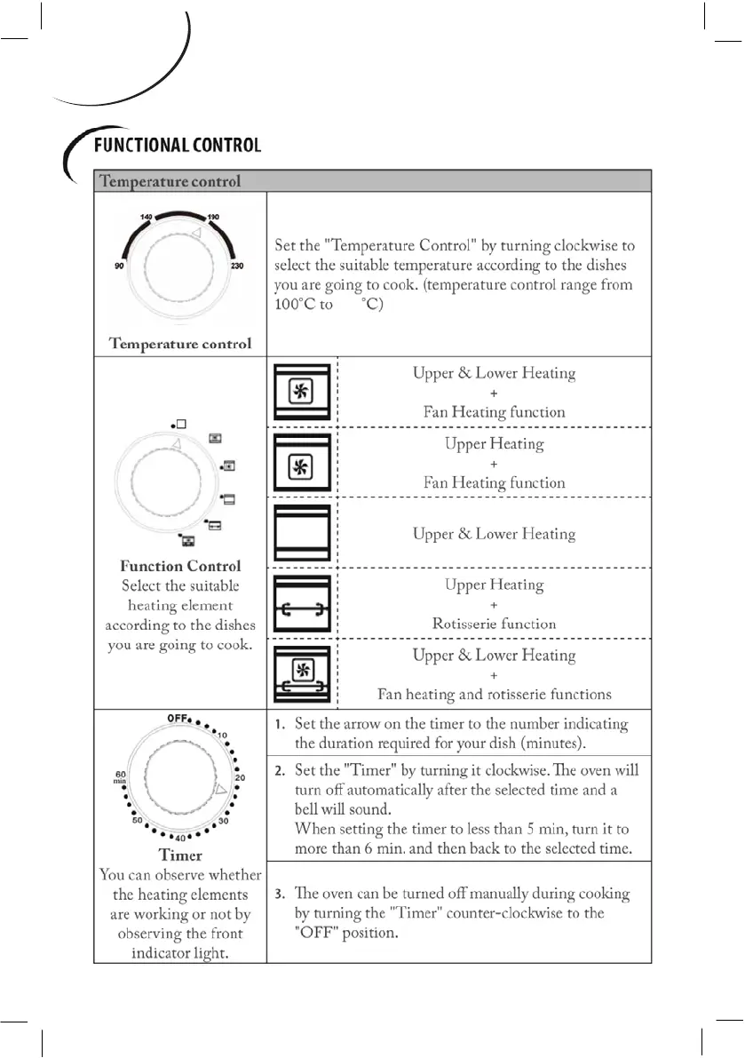 FAR GREG A12 CI - FUNCTIONAL CONTROL; Temperature Control; Heating Element and Fan Selection; Timer Operation