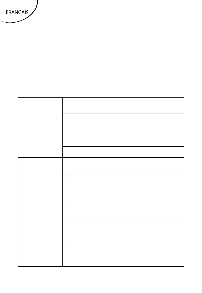 l’appareil. Si le problème persiste après avoir pris les mesures de résolution