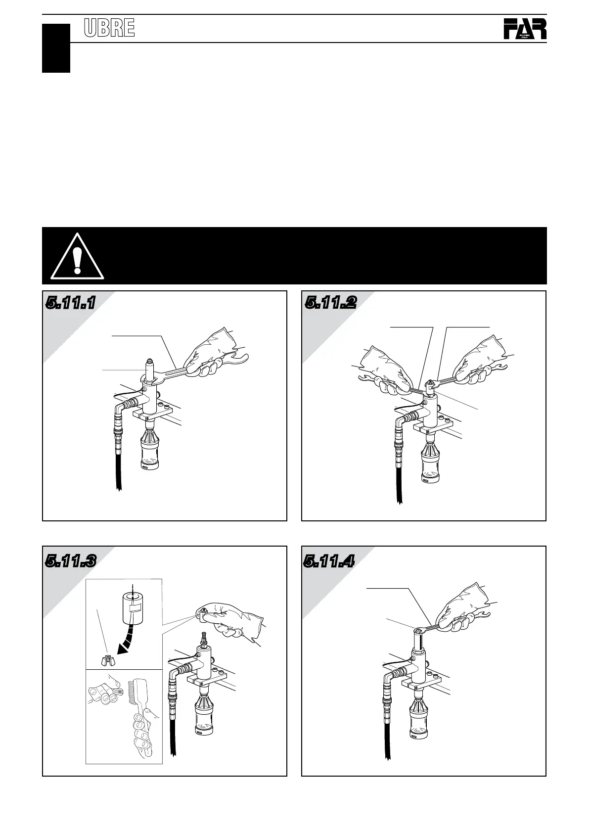 Smontare il cannotto porta ugello (V) servendosi di una chiave commerciale di mm 27. Una volta rimosso il cannotto porta ugello,