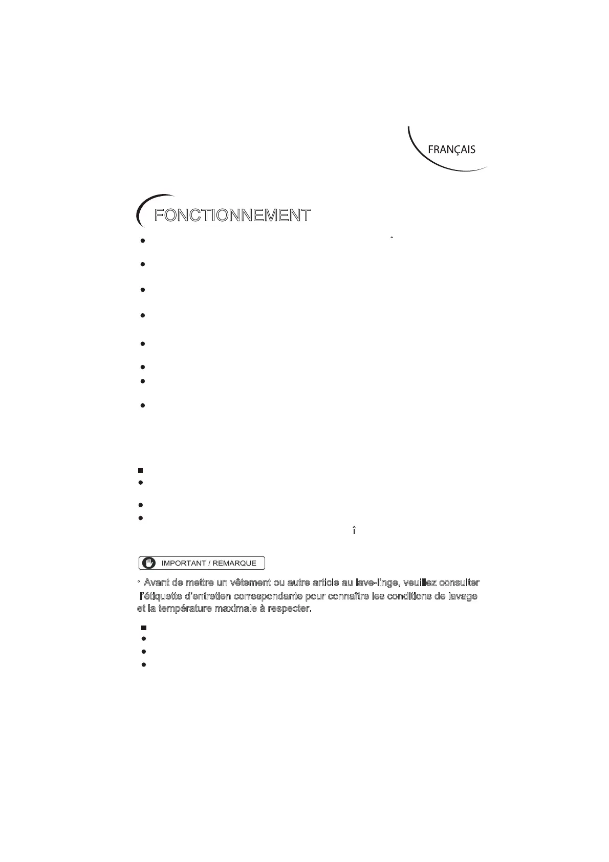 x Avant de mettre un vêtement ou autre article au lave-linge, veuillez consulter