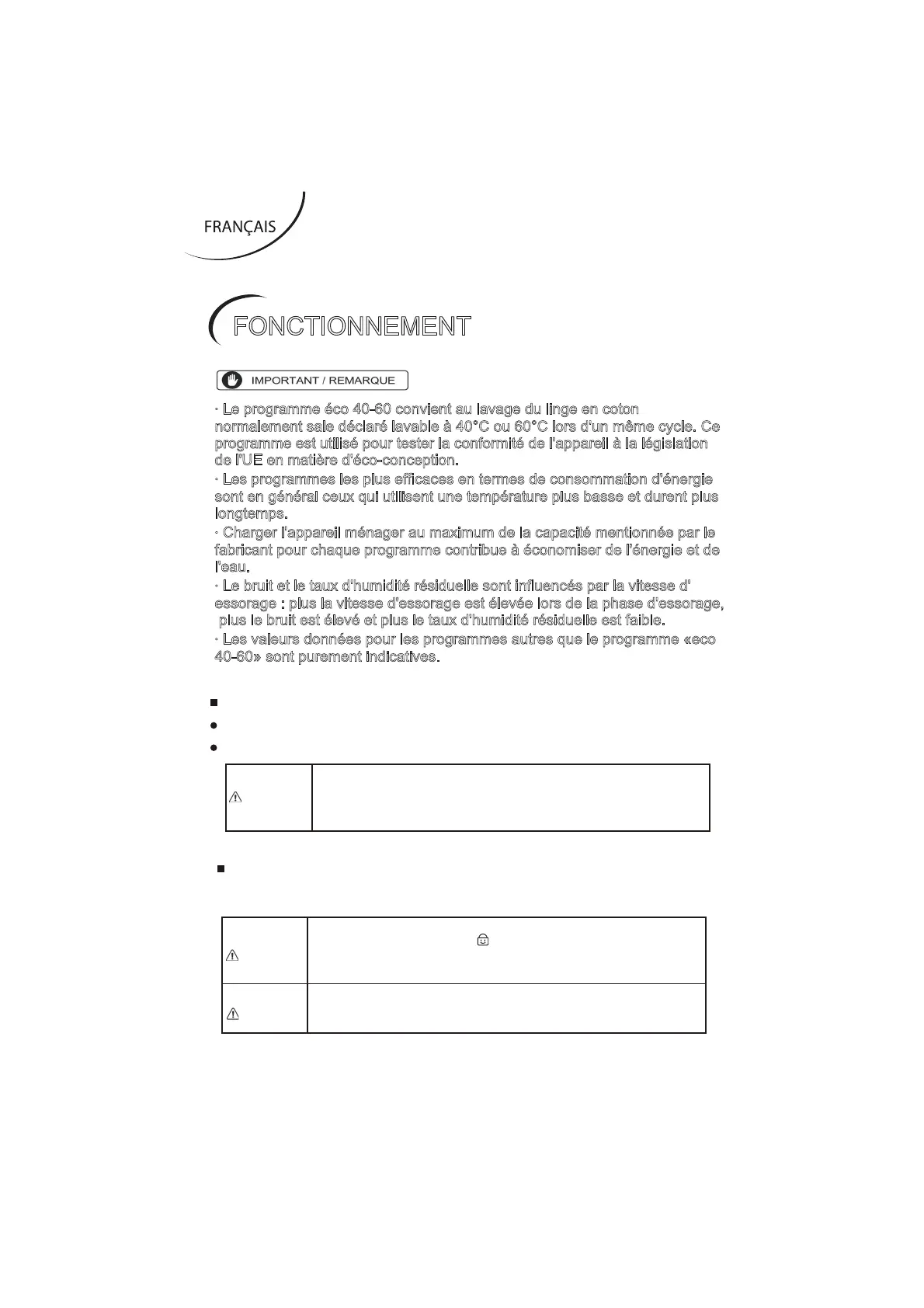 x Le programme éco 40-60 convient au lavage du linge en coton