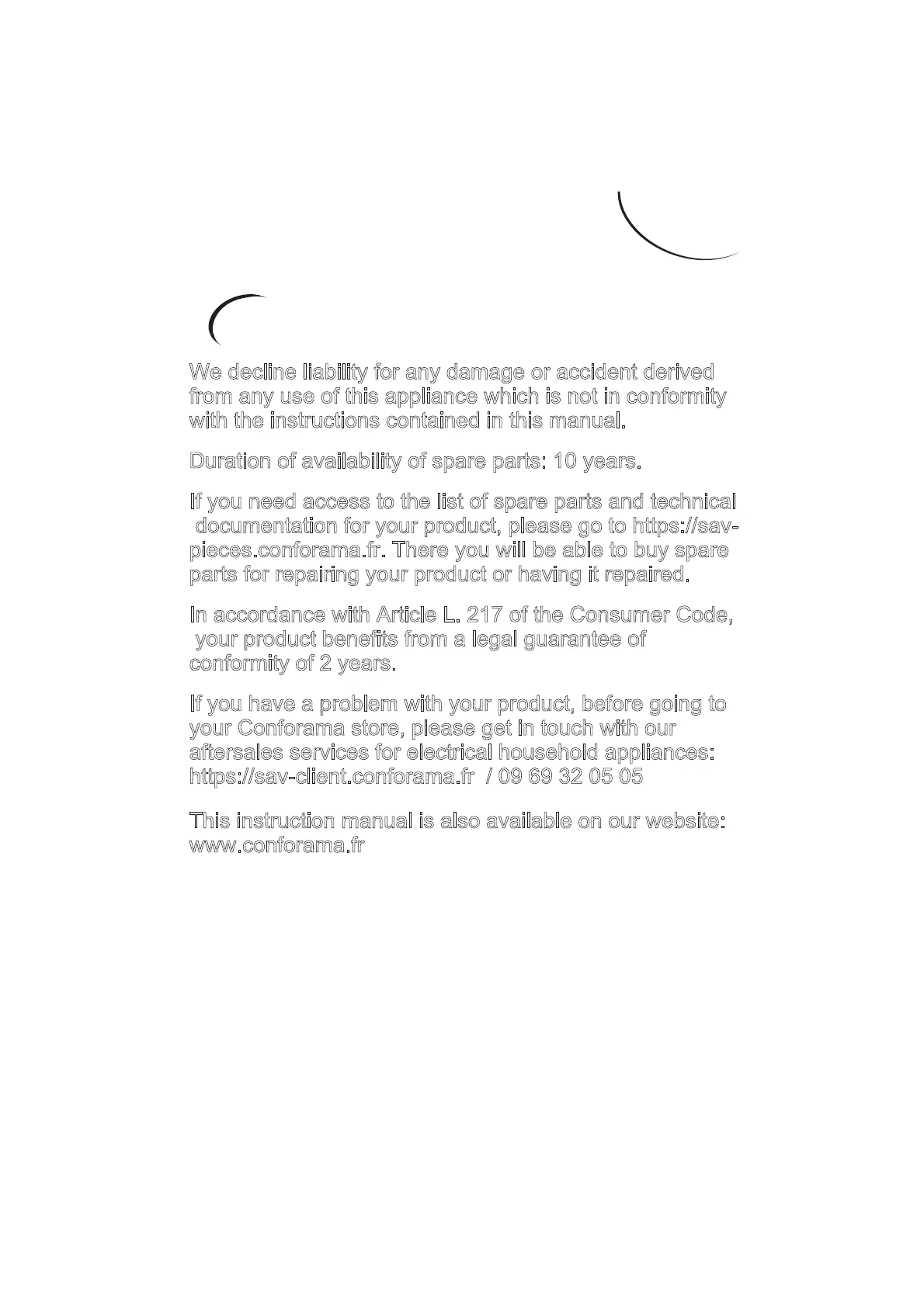 https://sav-client.conforama.fr / 09 69 32 05 05