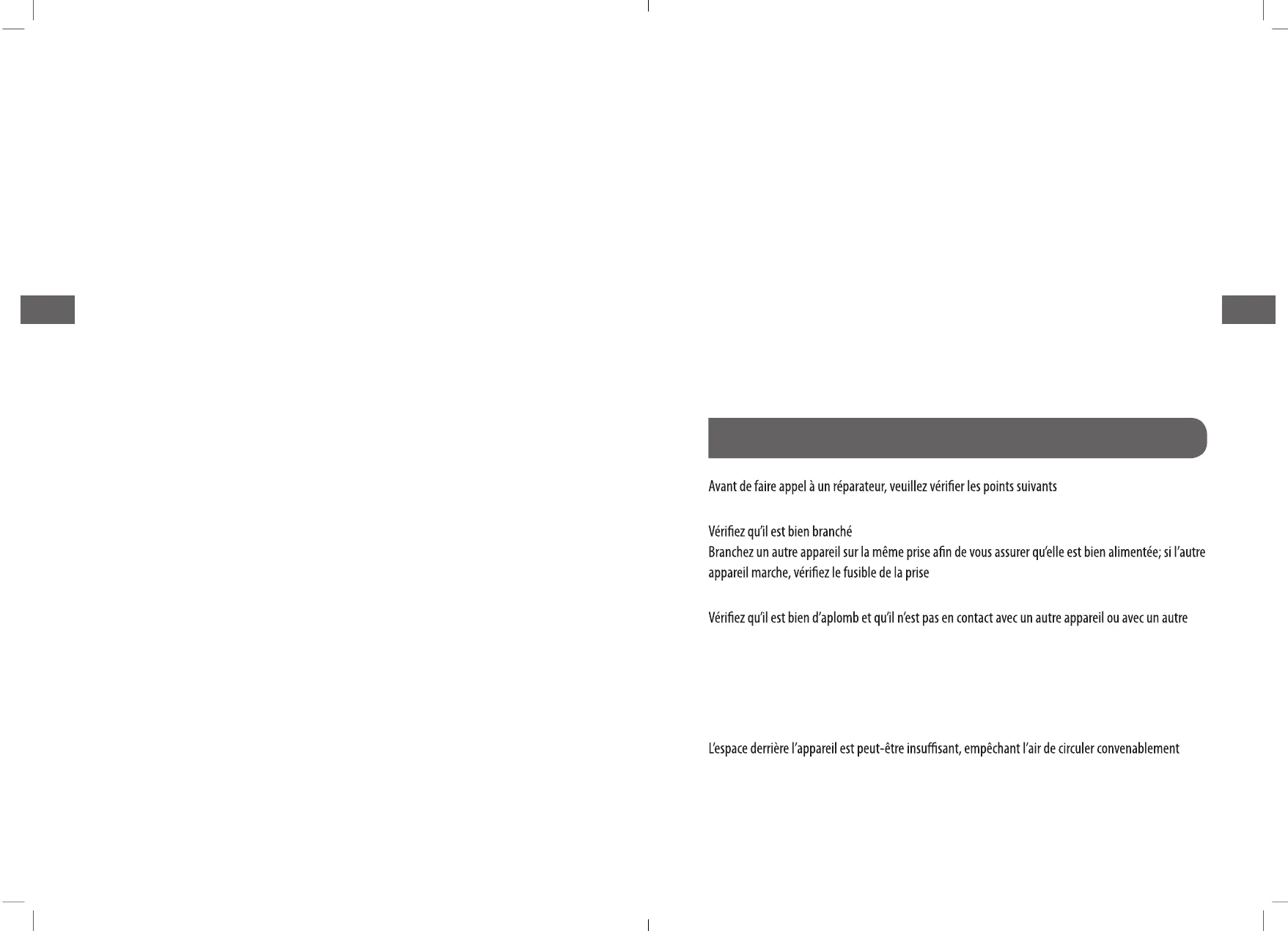 L’APPAREIL NE MARCHE PAS.
