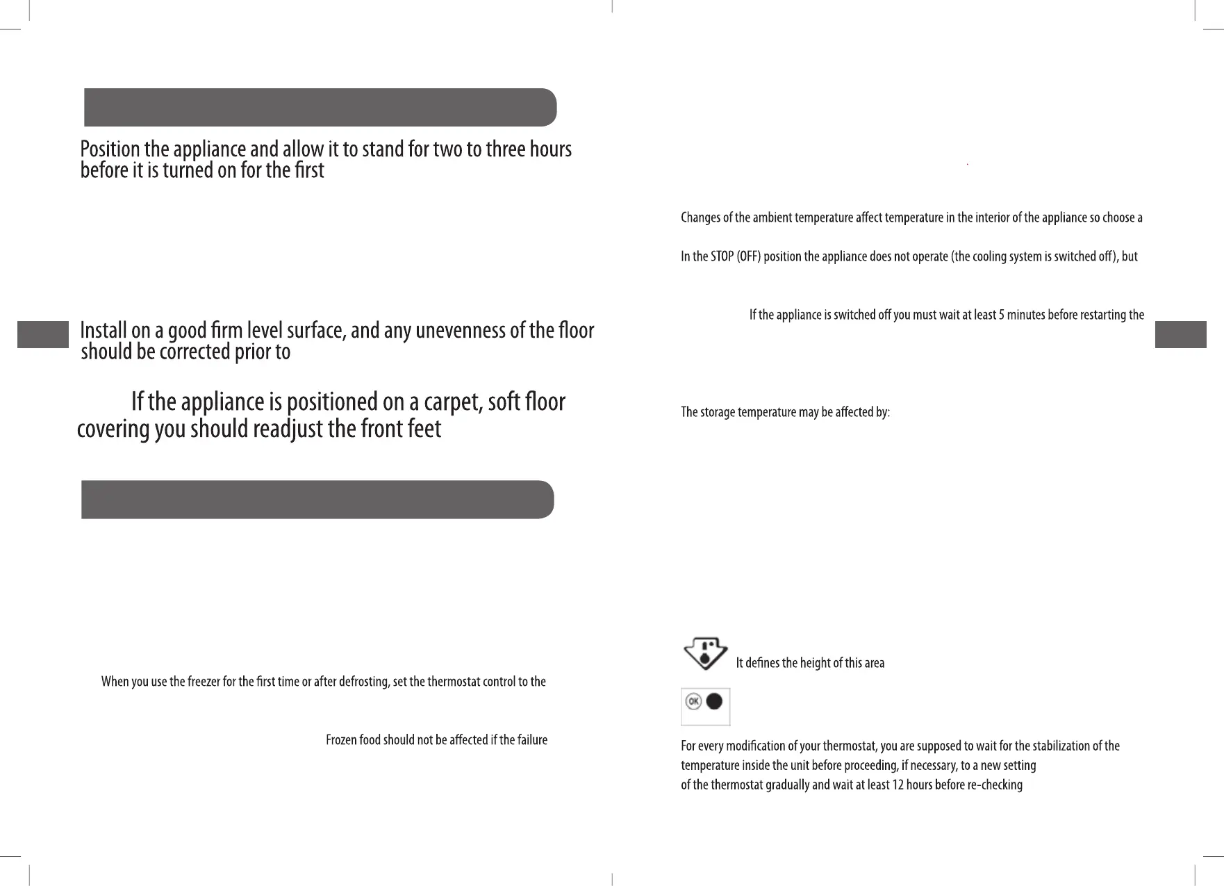maximum position for at least 2 hours before introducing food to be stored, and then readjust to