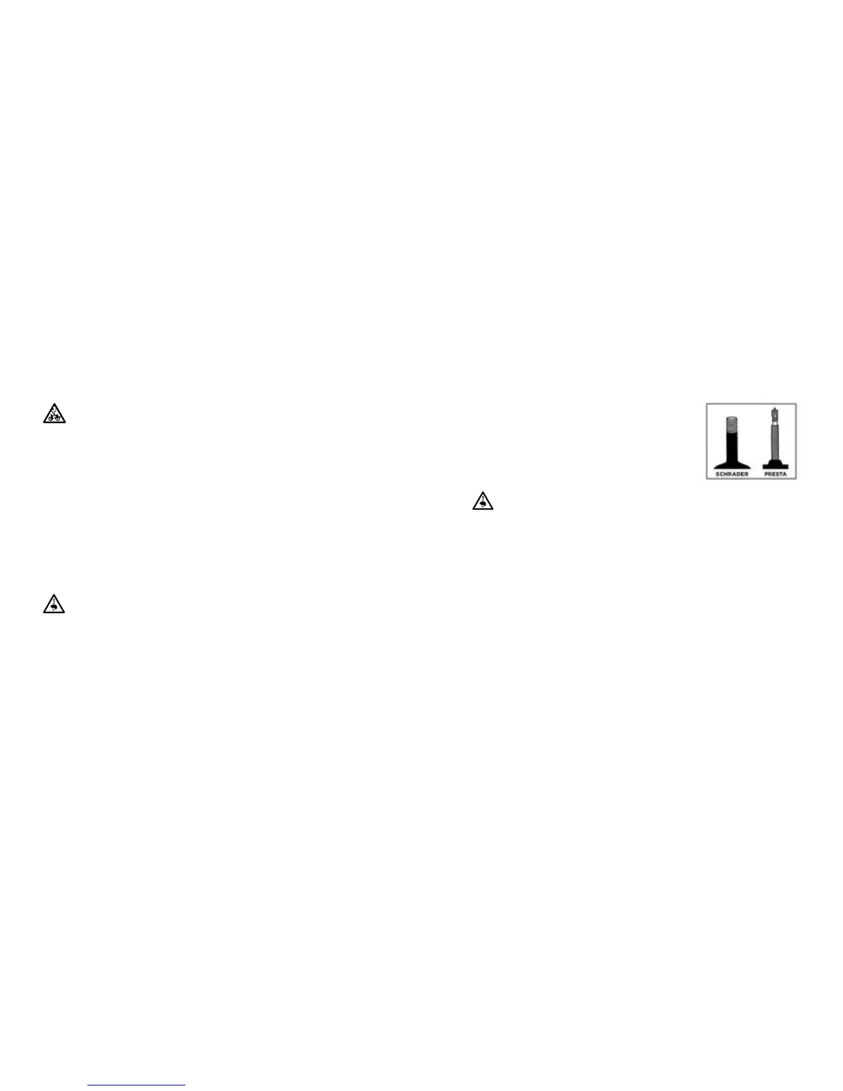 may cause injury. Under-inflated tires run the risk of pinching, which will